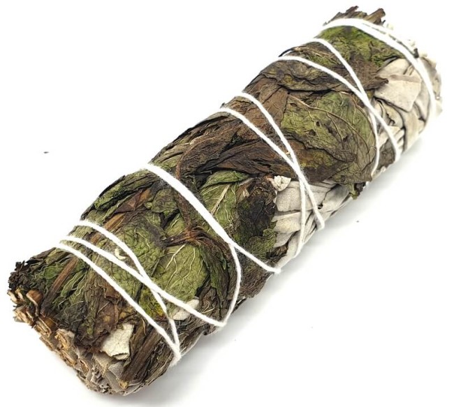 Magnifique Association de Sauge blanche et feuille de Menthe pour fumigation.