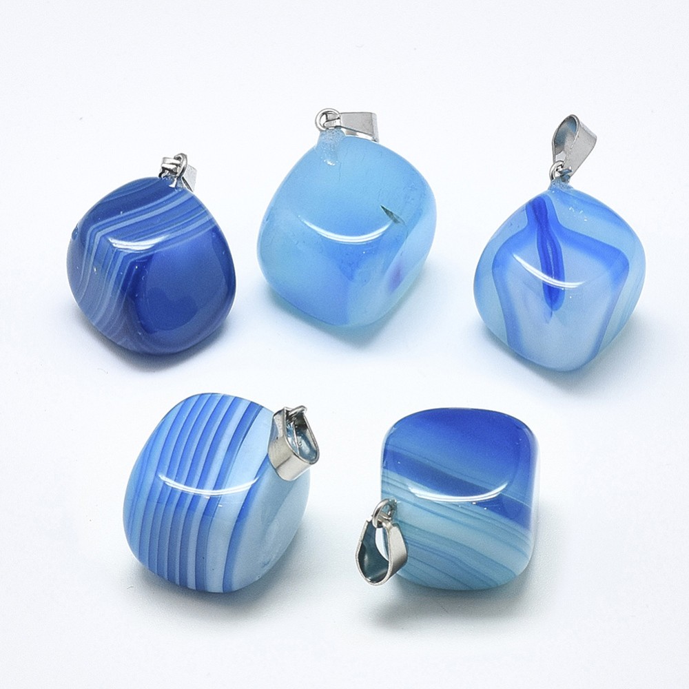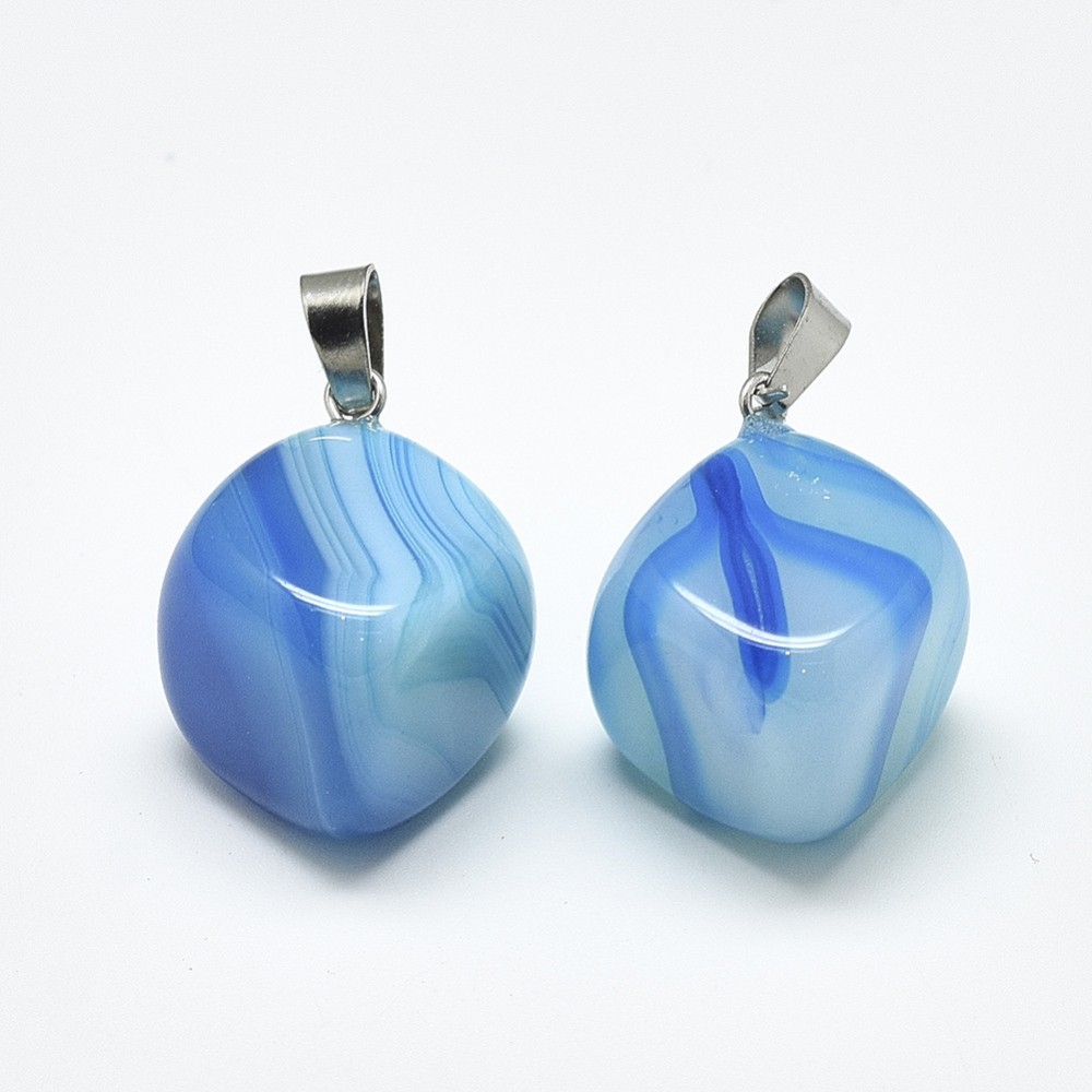 AGATE BLEUE Pendentif Cube gemme pierre naturelle