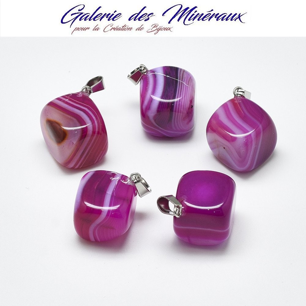 AGATE ROSE Pendentif Cube gemme pierre naturelle