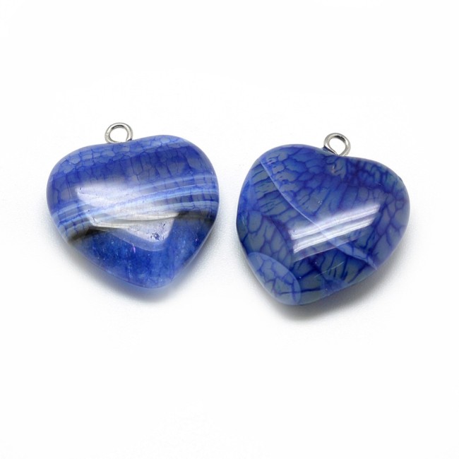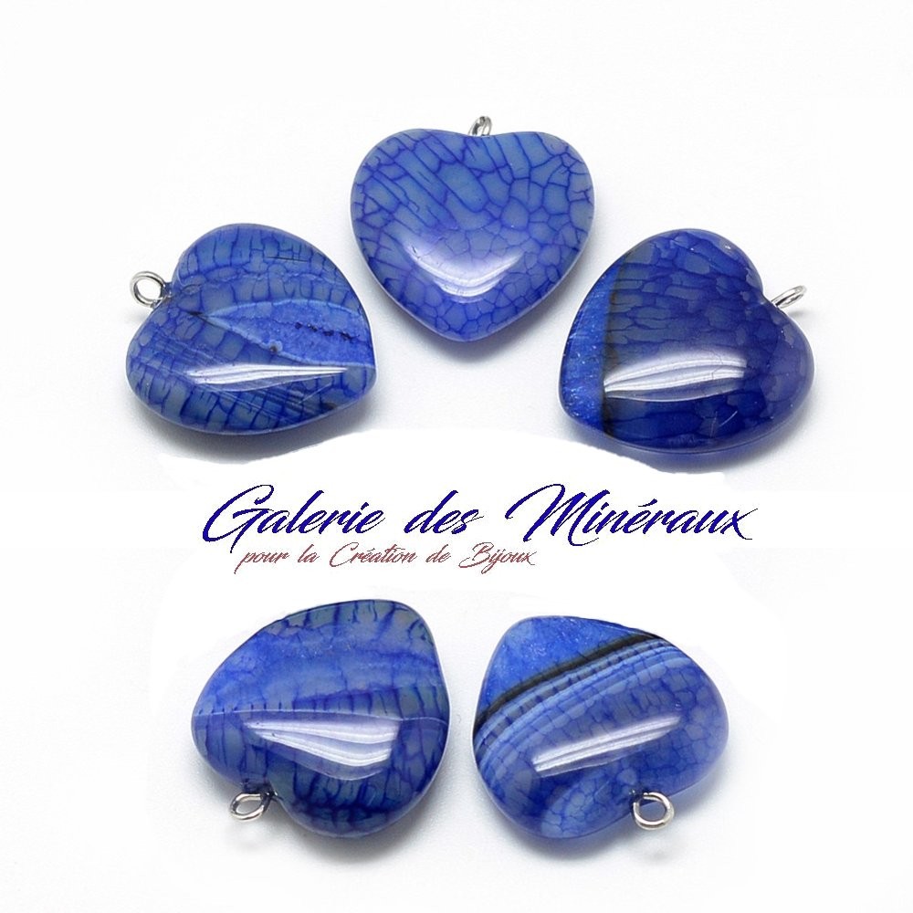 AGATE Brésilienne BLEUE à Veines Apparentes Pendentif Coeur gemme pierre naturelle