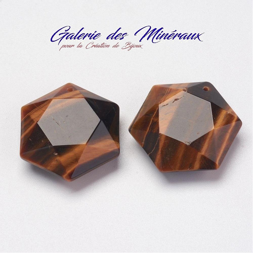 OEIL DE TIGRE Pendentif Hexagonale gemme pierre naturelle