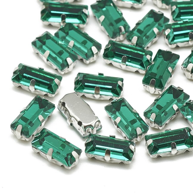 Cristaux à Coudre / à Tisser VERTES EMERAUDE de Strass en Verre au format Rectangle de 10mm à Facettes