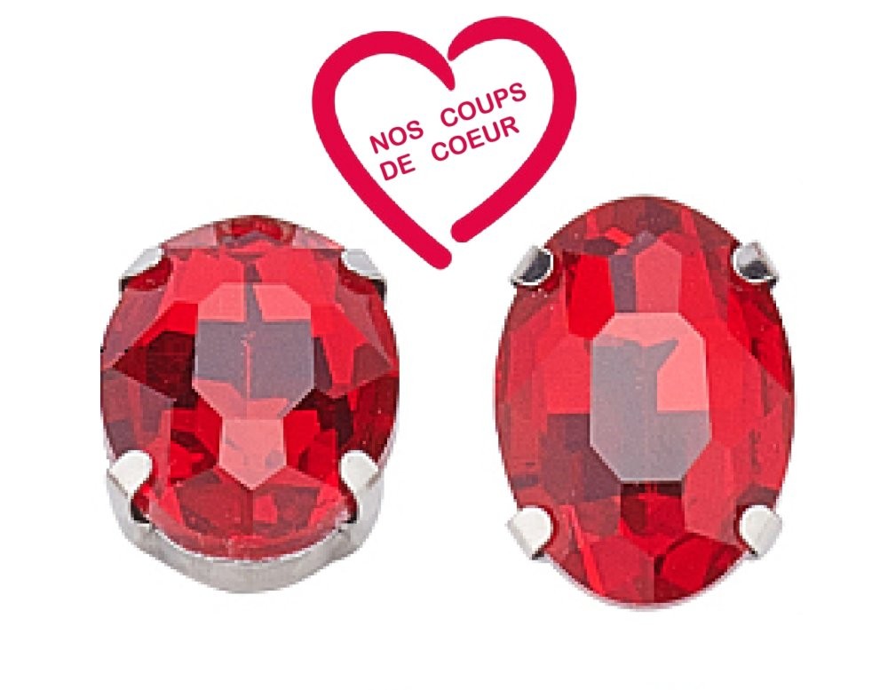 Cristaux à Coudre / à Tisser ROUGES RUBIS de Strass en Verre au format Ovale de 18mm à Facettes