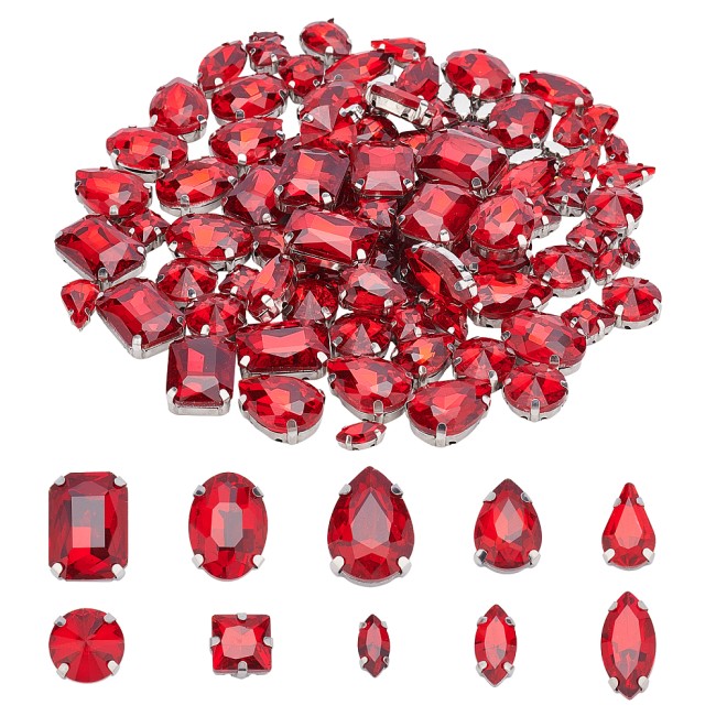 Cristaux à Coudre / à Tisser ROUGES RUBIS de Strass en Verre au format Ronde de 12mm à Facettes