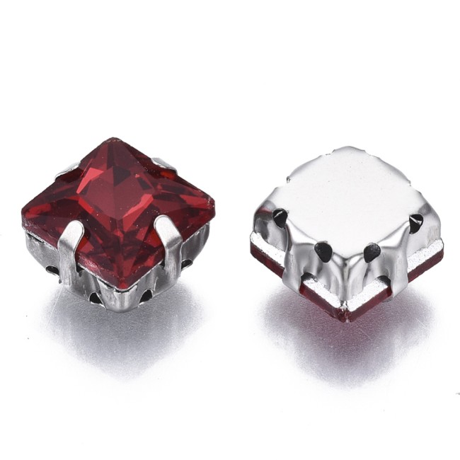 Cristaux à Coudre / à Tisser ROUGES RUBIS de Strass en Verre au format Carré de 8mm à Facettes