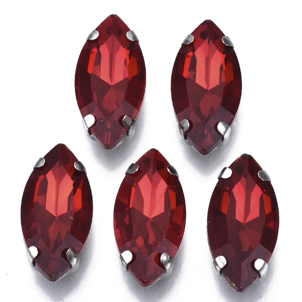 Cristaux à Coudre / à Tisser ROUGES RUBIS de Strass en Verre au format Marquise de 18mm à Facettes