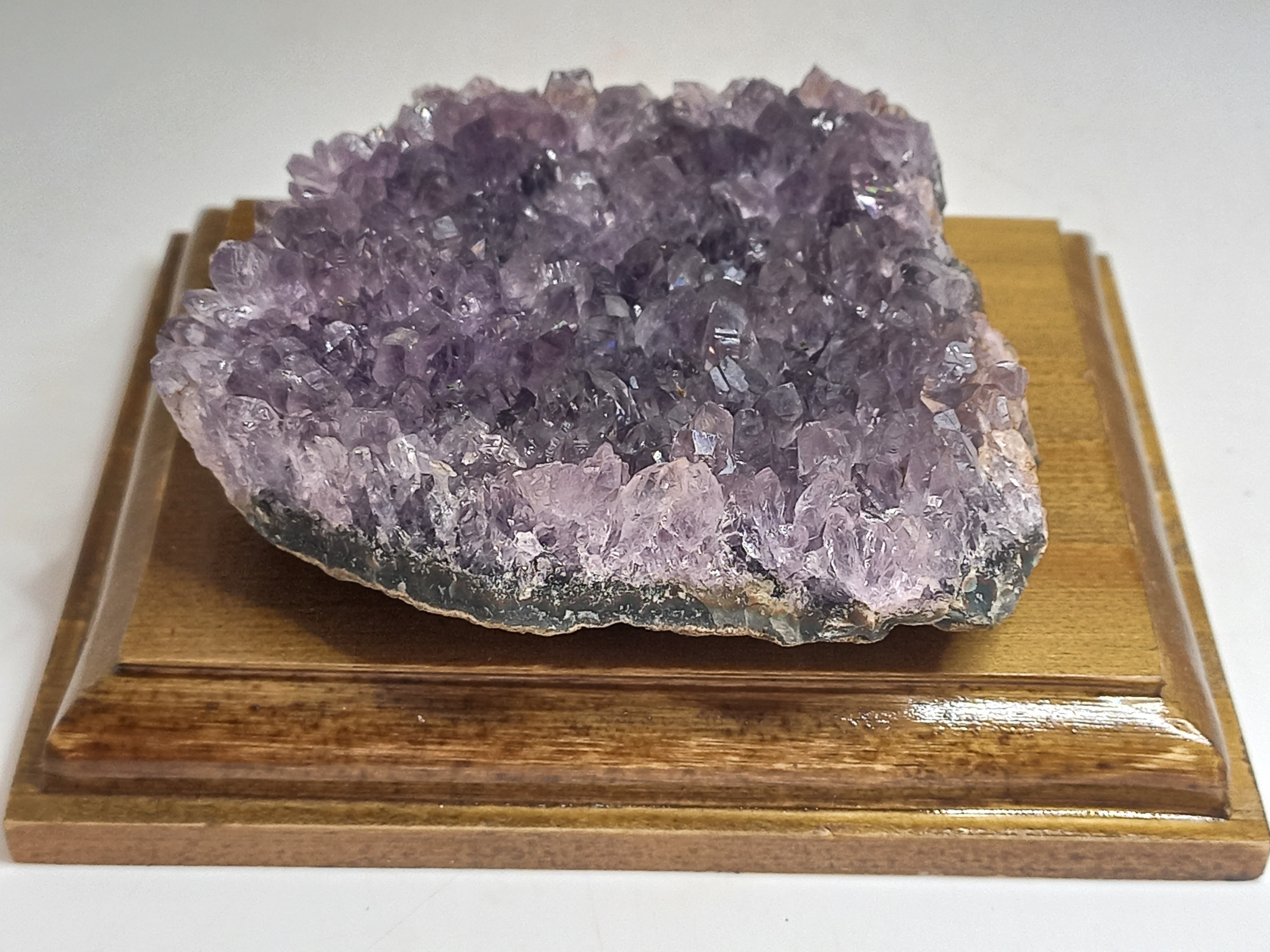 DRUSE de CRISTAUX d'AMETHYSTE sur socle en Bois
