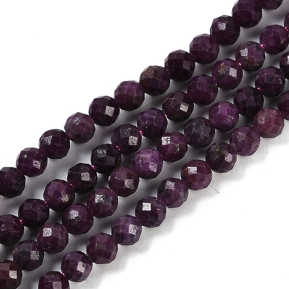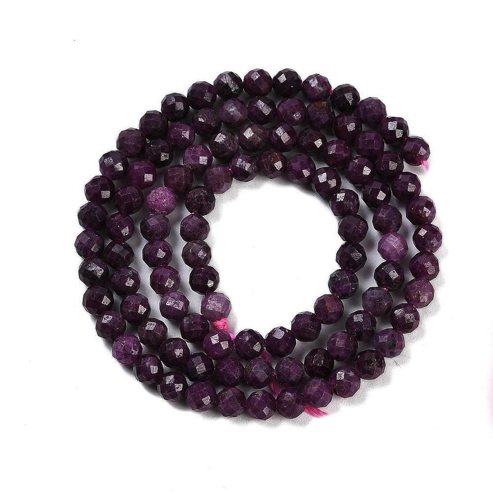 RUBIS gemme pierre naturelle en lot de perles rondes, à Facettes et percées