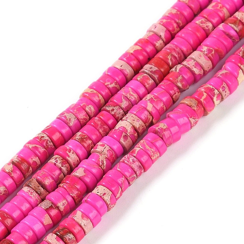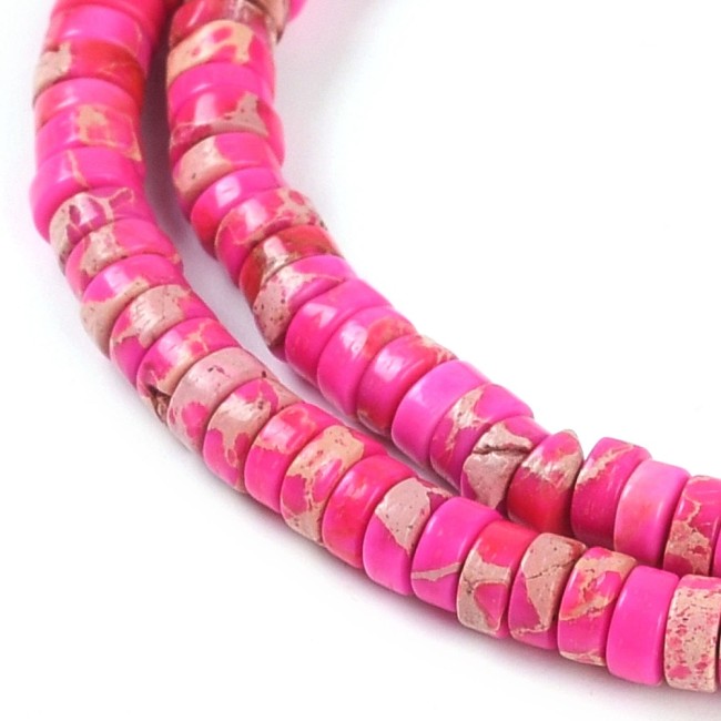 JASPE IMPERIAL ROSE gemme perle naturelle en rondelle HEISHI, lisse et percée