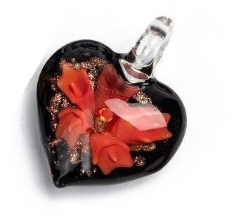 Pendentif Coeur FLORAL Rouge vernissé Sable doré 40x30mm avec motifs