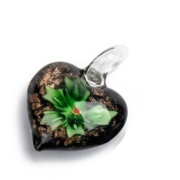 Pendentif Coeur FLORAL Vert vernissé Sable doré 40x30mm avec motifs