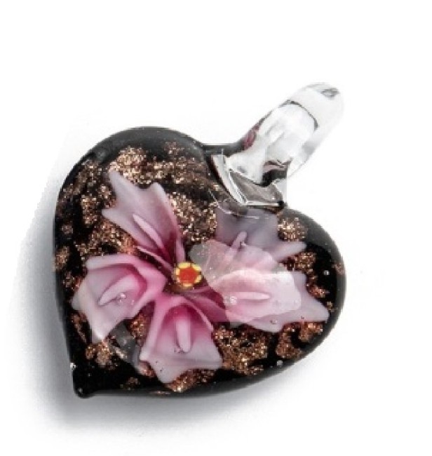 Pendentif Coeur FLORAL Rose vernissé Sable doré 40x30mm avec motifs