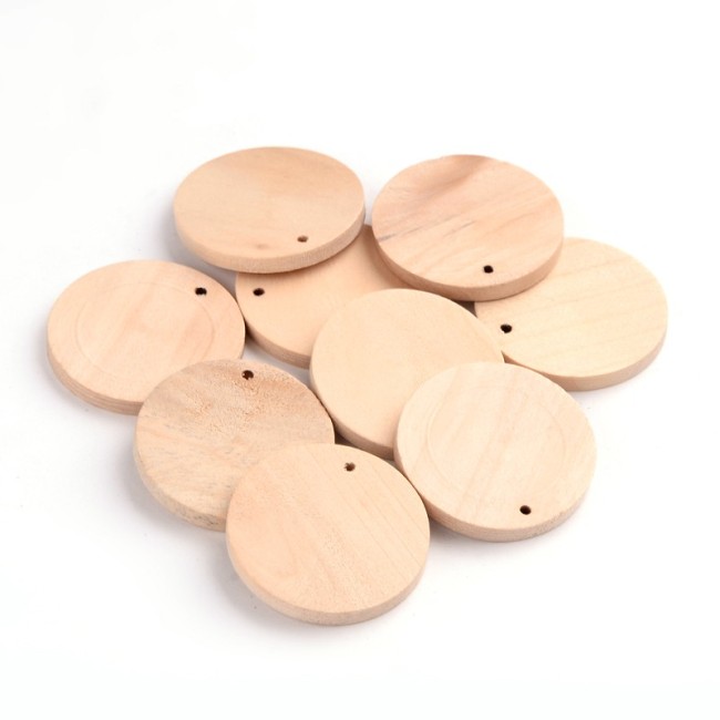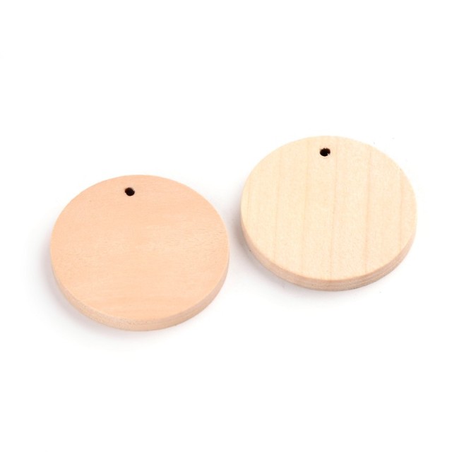 Pendentif Rond en Bois naturel de Hêtre 34mm