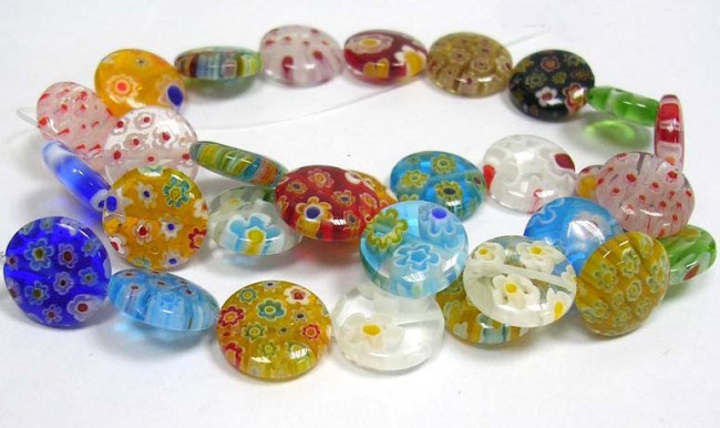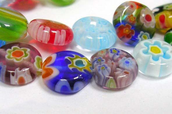 Perles MURANO MilleFiori perle en verre décoré en lot de perles rondes plates, lisses et percées
