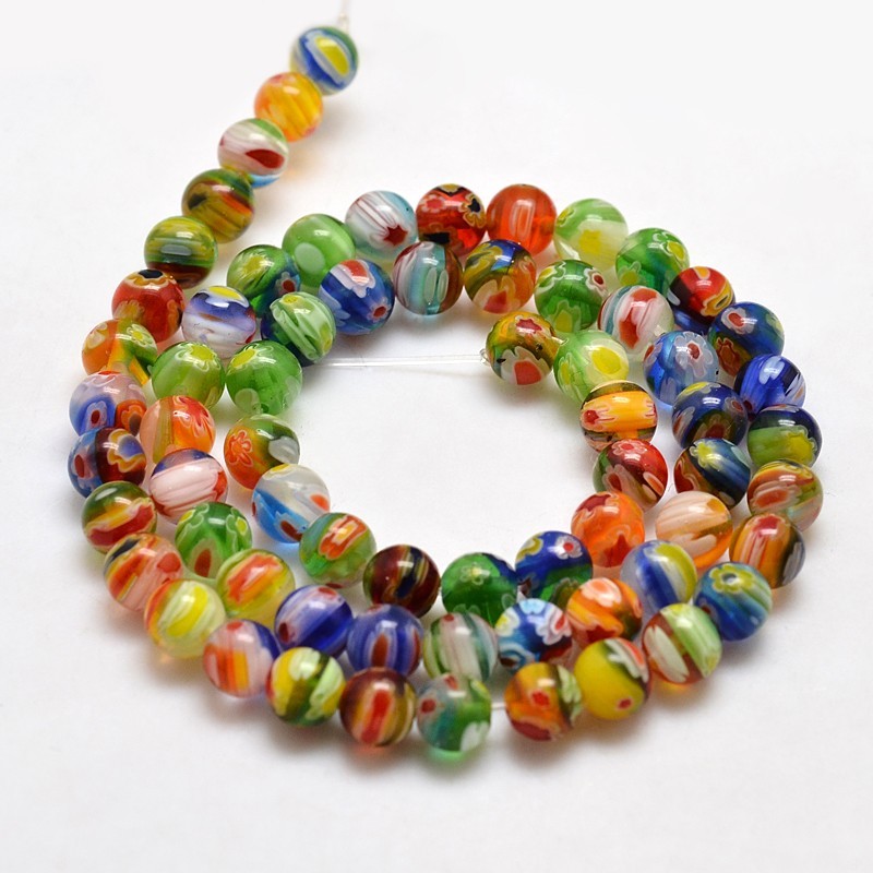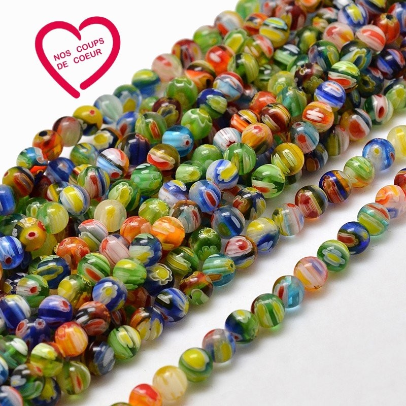 Perles MULTI COULEURS MURANO MilleFiori perle en verre décoré en lot de perles rondes lisses et percées