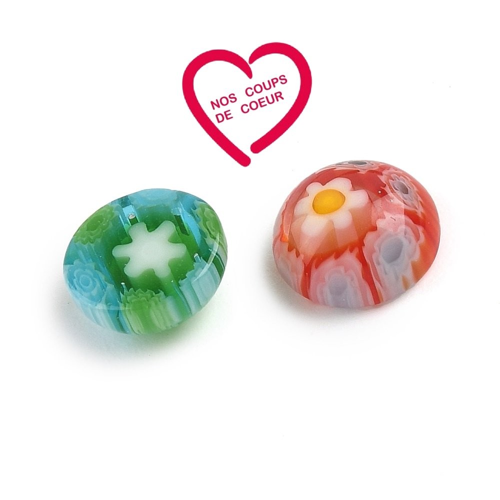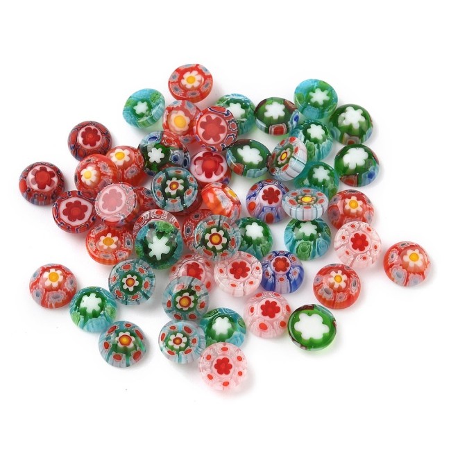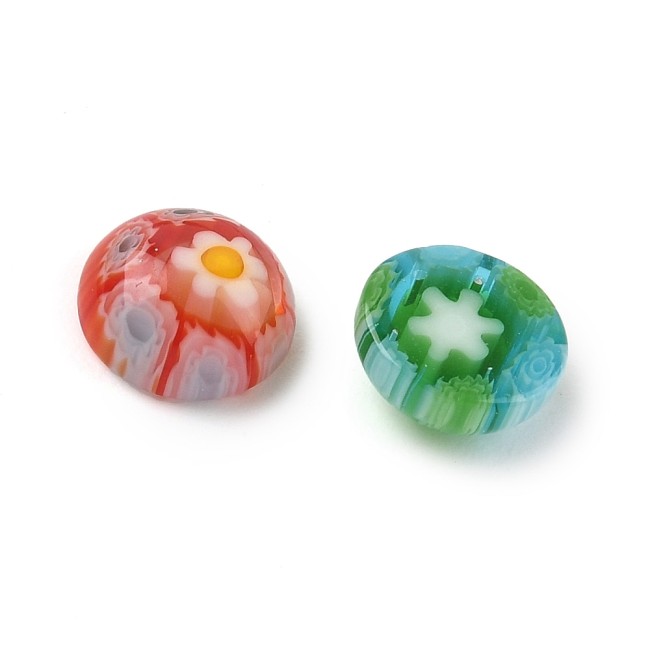 MURANO MilleFiori Cabochon en verre décoré au format Rond et à dos Plat