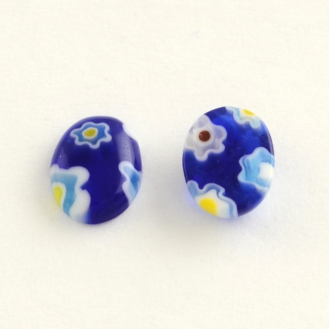 MURANO MilleFiori Cabochon en verre décoré au format Ovale et à dos Plat