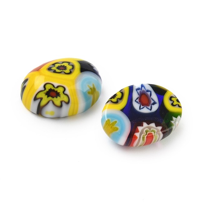 MURANO MilleFiori Cabochon en verre décoré au format Ovale et à dos Plat