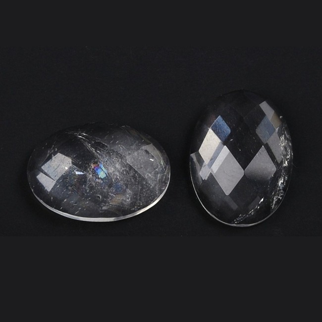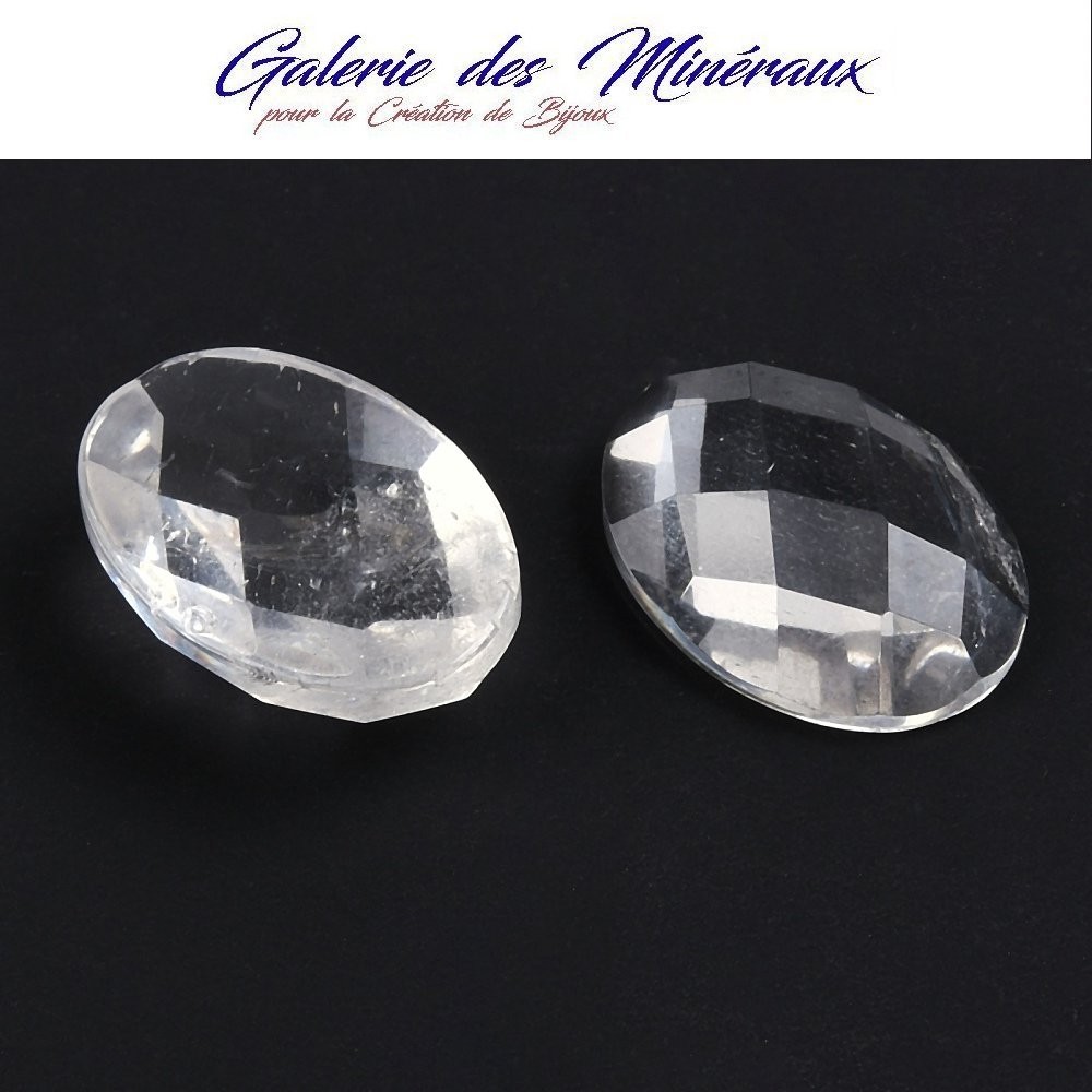 CRISTAL DE ROCHE cabochon gemme pierre naturelle Cabochon Ovale à Facettes et dos Plat