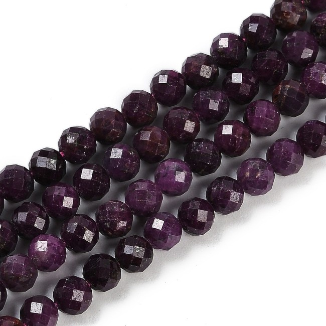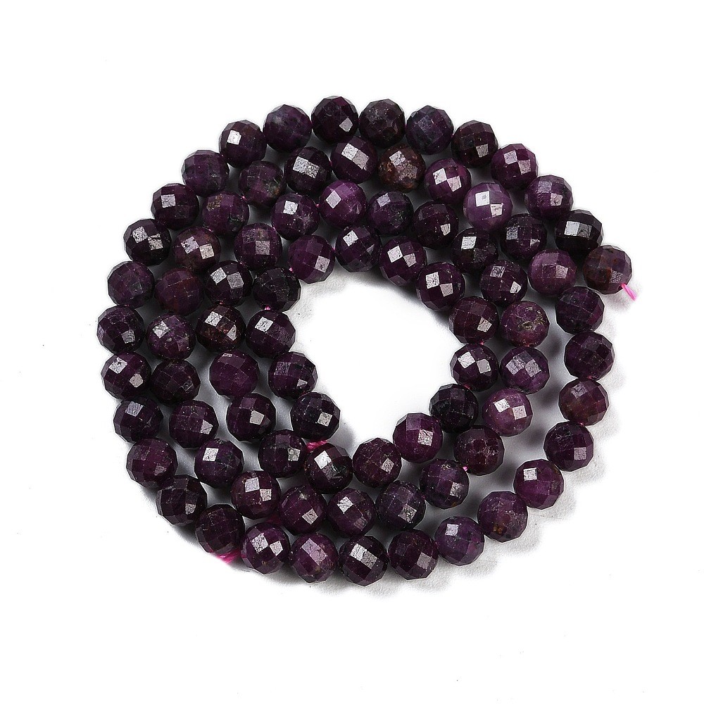 RUBIS gemme pierre naturelle en lot de perles rondes, à Facettes et percées