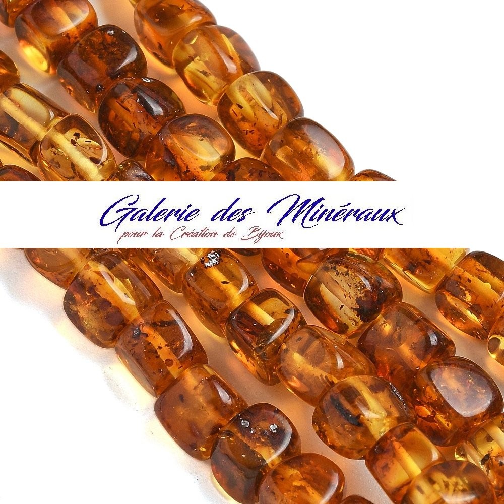 AMBRE de la Baltique gemme pierre naturelle en lot de perles cubes, lisses et percées