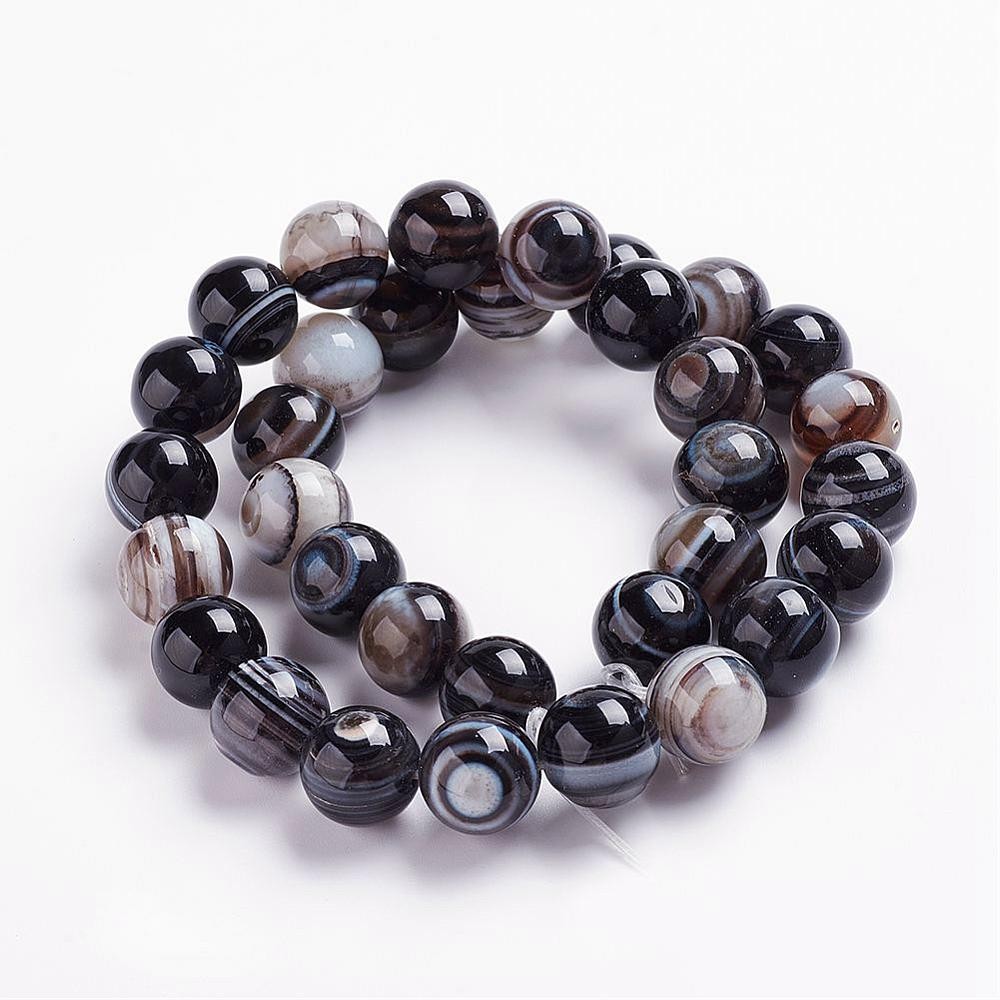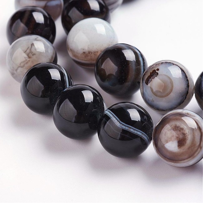 AGATE NOIRE gemme pierre naturelle en lot de grosses perles rondes, lisses et percées