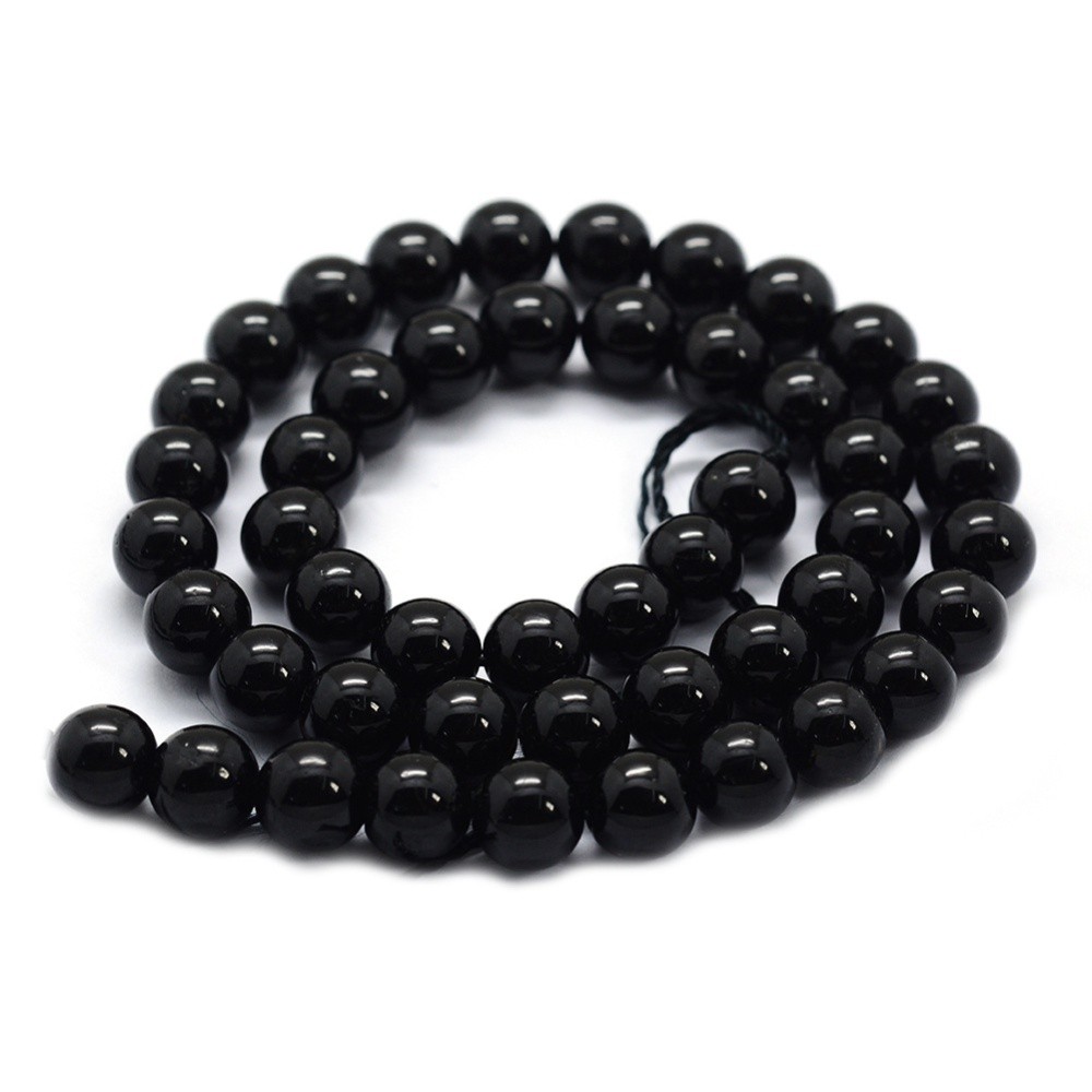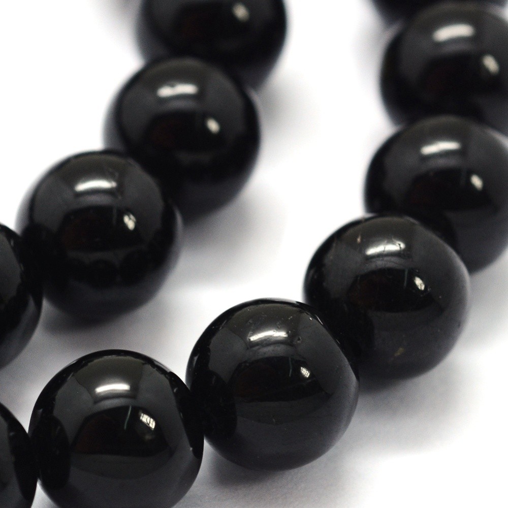ONYX NOIR gemme pierre naturelle en lot de grosses perles rondes, lisses et percées