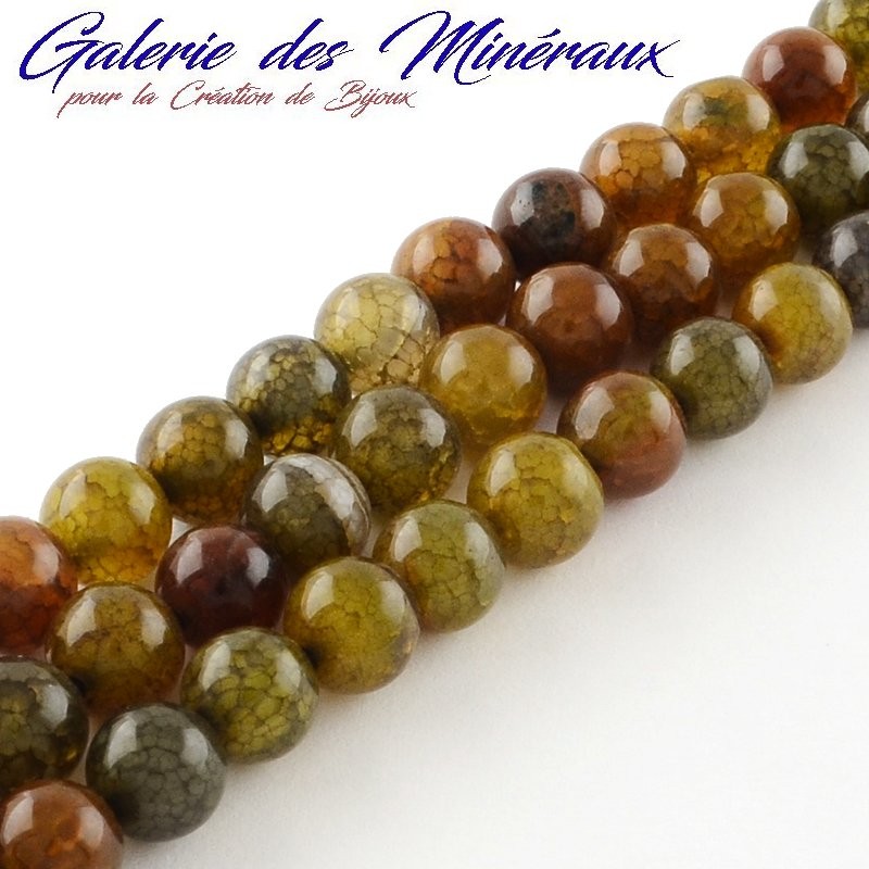 AGATE VEINES DE DRAGON gemme pierre naturelle en lot de grosses perles rondes, lisses et percées