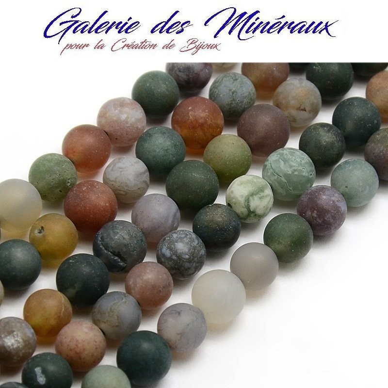 AGATE INDIENNE Mât Givré gemme pierre naturelle en lot de grosses perles rondes, lisses et percées