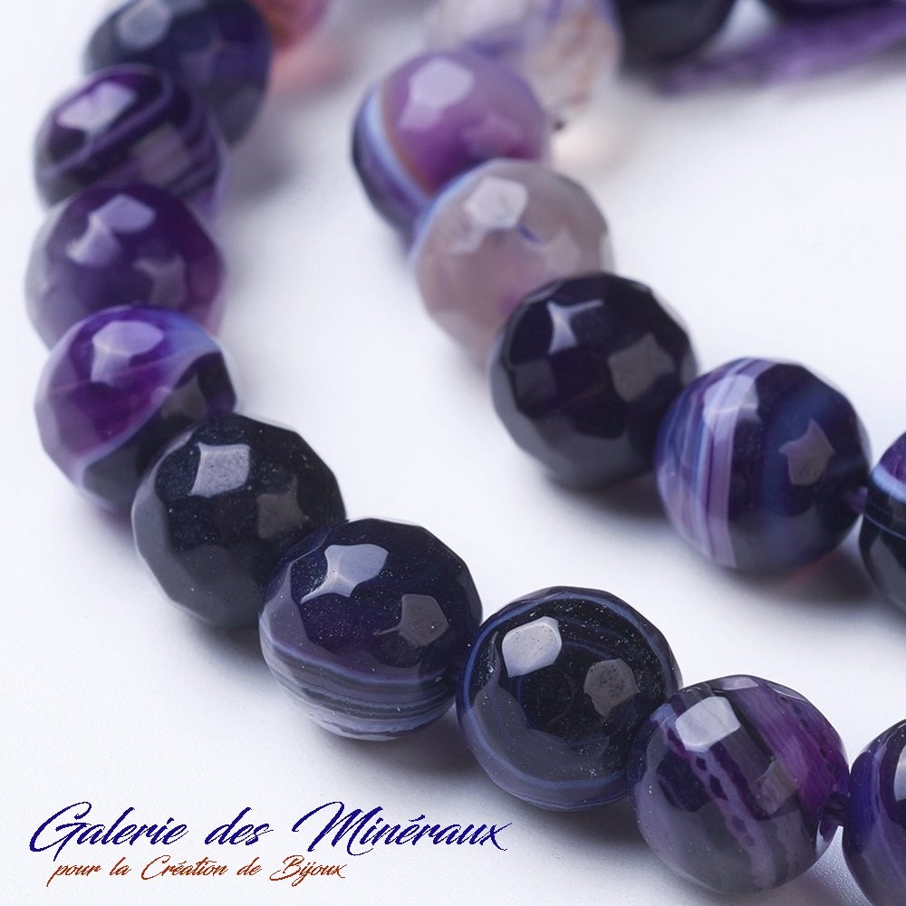 AGATE VIOLINE gemme pierre naturelle en lot de grosses perles rondes à facettes et percées