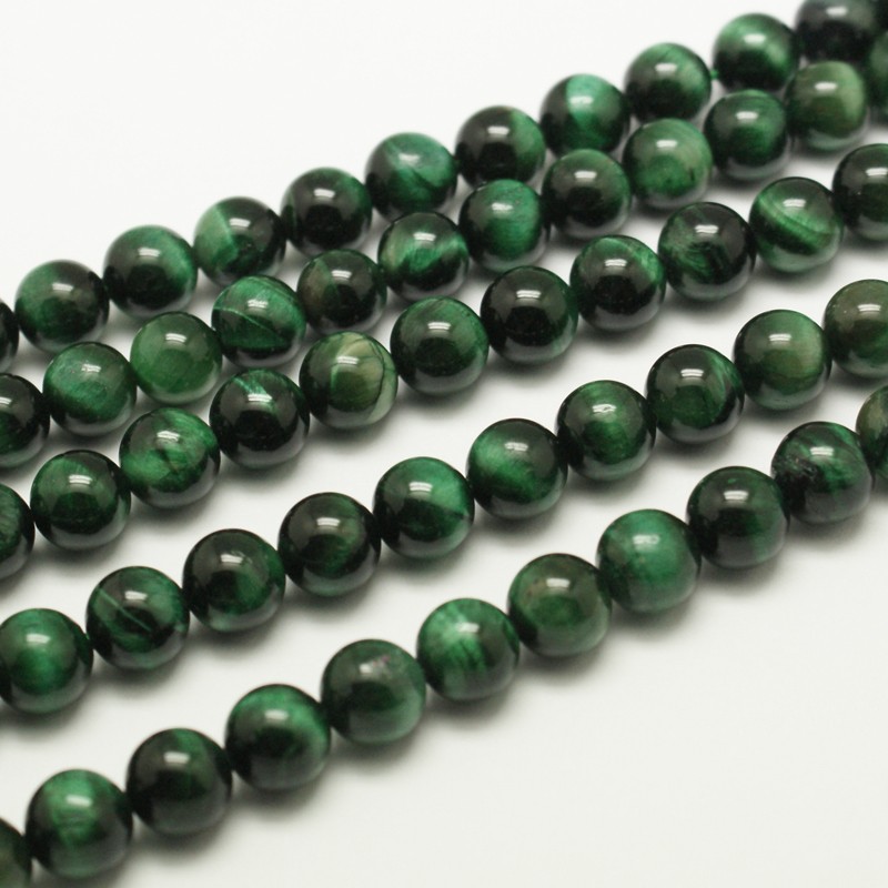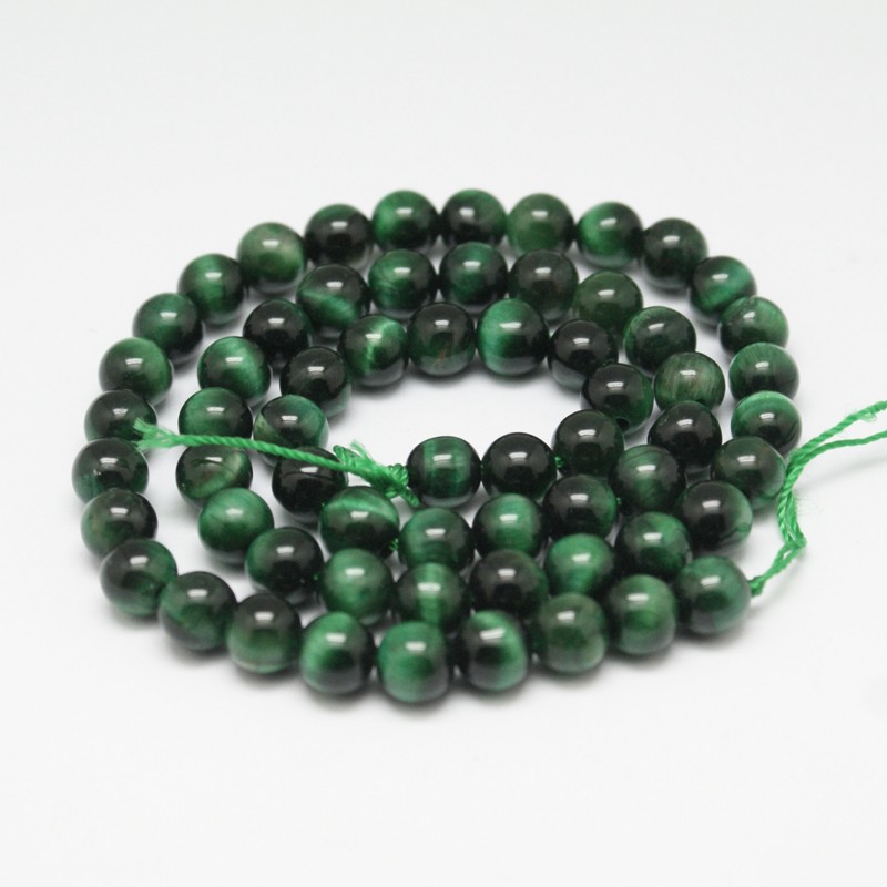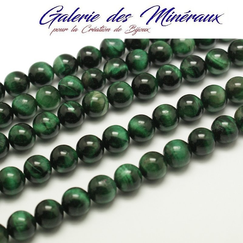 OEIL DE TIGRE Vert gemme pierre naturelle en lot de grosses perles rondes, lisses et percées