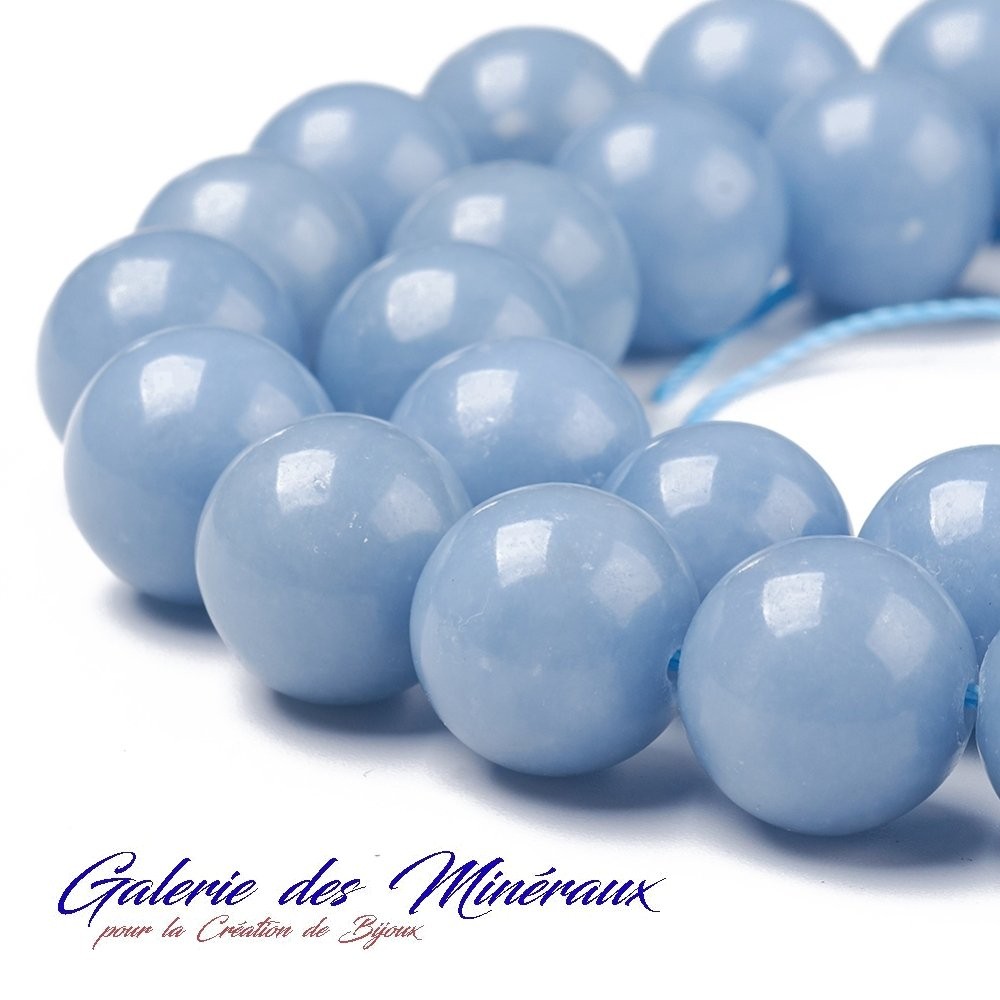 ANGELITE gemme pierre naturelle en lot de grosses perles rondes, lisses et percées