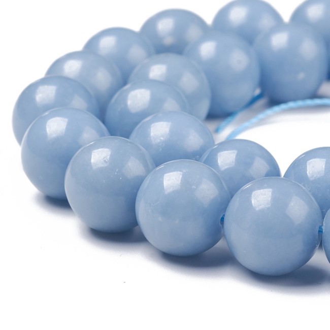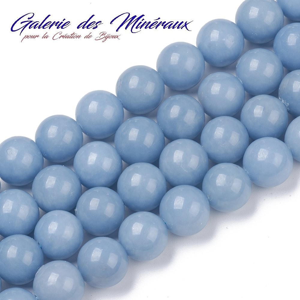 ANGELITE gemme pierre naturelle en lot de grosses perles rondes, lisses et percées