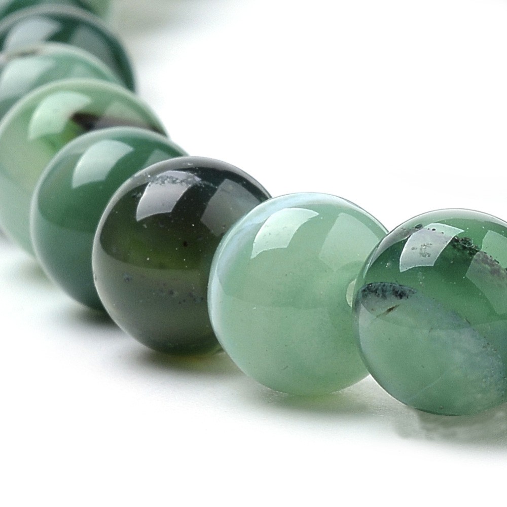 AGATE VERTE gemme pierre naturelle en lot de grosses perles rondes, lisses et percées