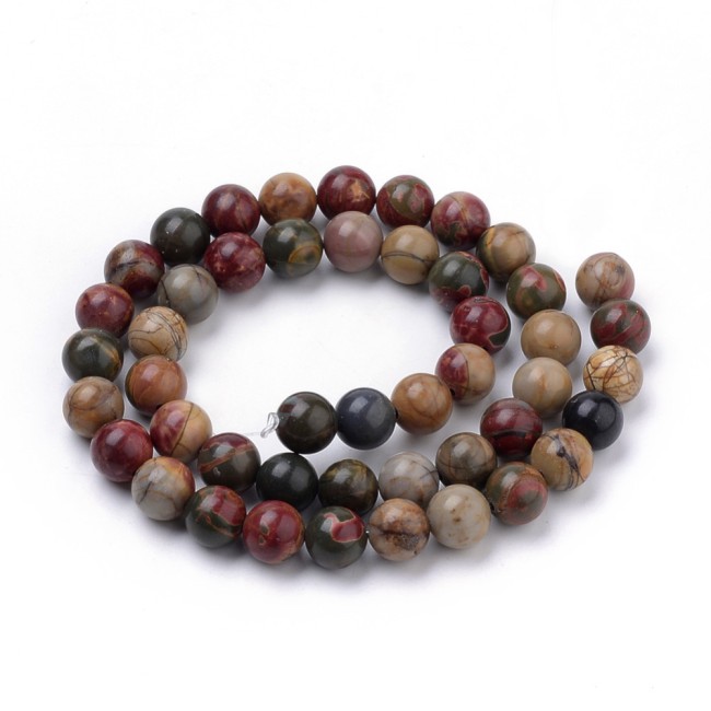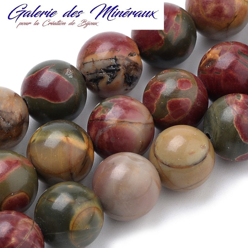 JASPE PICASSO gemme pierre naturelle en lot de grosses perles rondes, lisses et percées