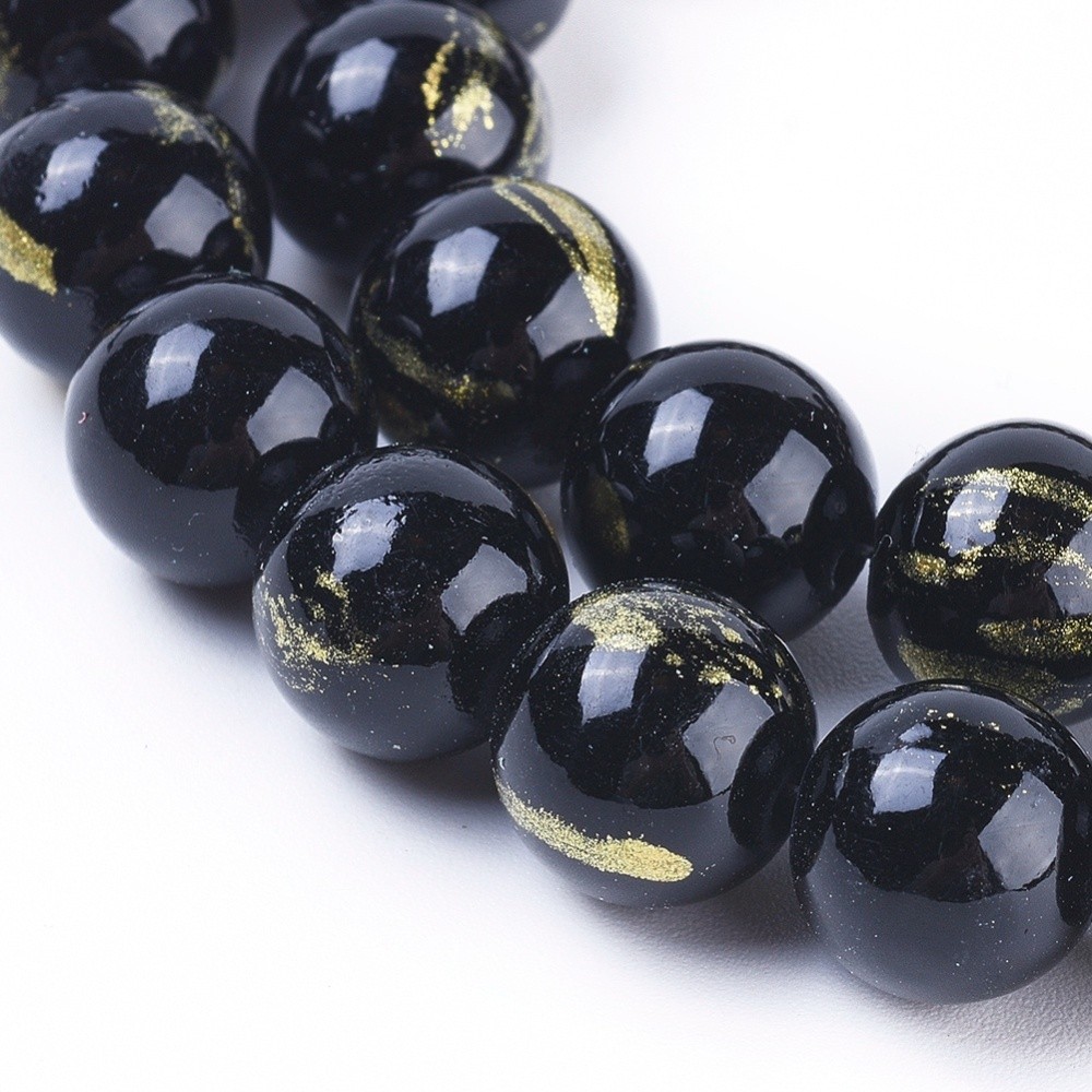 JADE MASHAN Noir avec Poudre d'or gemme pierre naturelle en lot de grosses perles rondes, lisses et percées