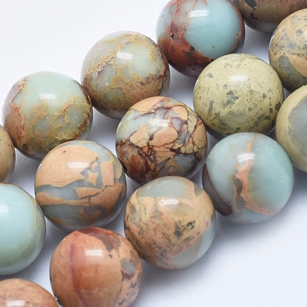 JASPE AQUA TERRA gemme pierre naturelle en lot de grosses perles rondes, lisses et percées