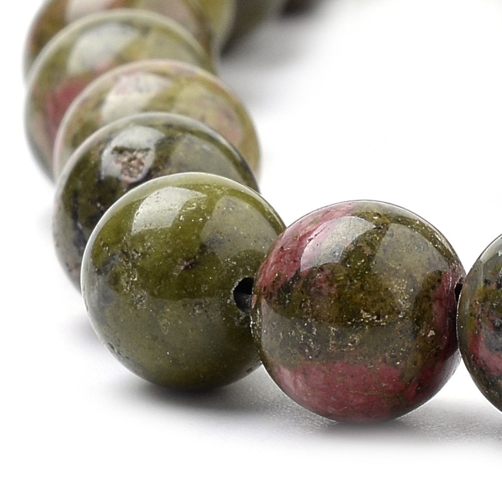 UNAKITE gemme pierre naturelle en lot de grosses perles rondes et percées