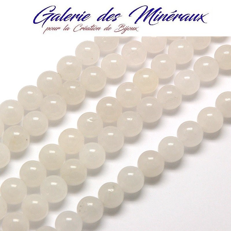 JADE BLANC gemme pierre naturelle en lot de grosses perles rondes et percées