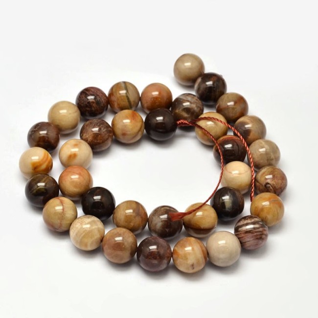 BOIS PETRIFIE gemme pierre naturelle en lot de grosses perles rondes, lisses et percées