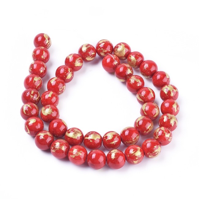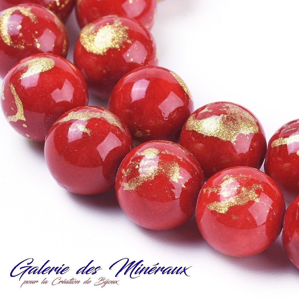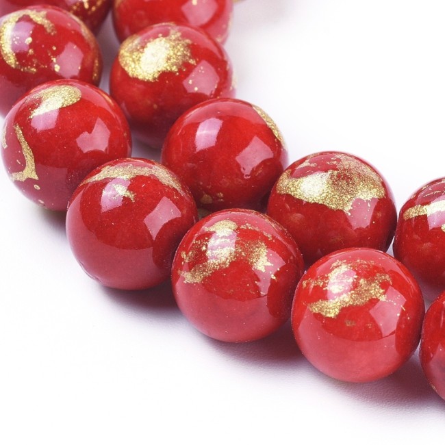 JADE MASHAN Rouge avec Poudre d'or gemme pierre naturelle en lot de grosses perles rondes, lisses et percées