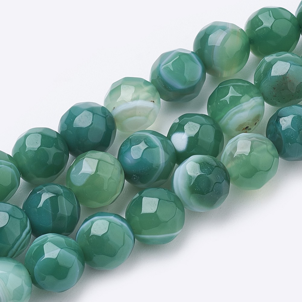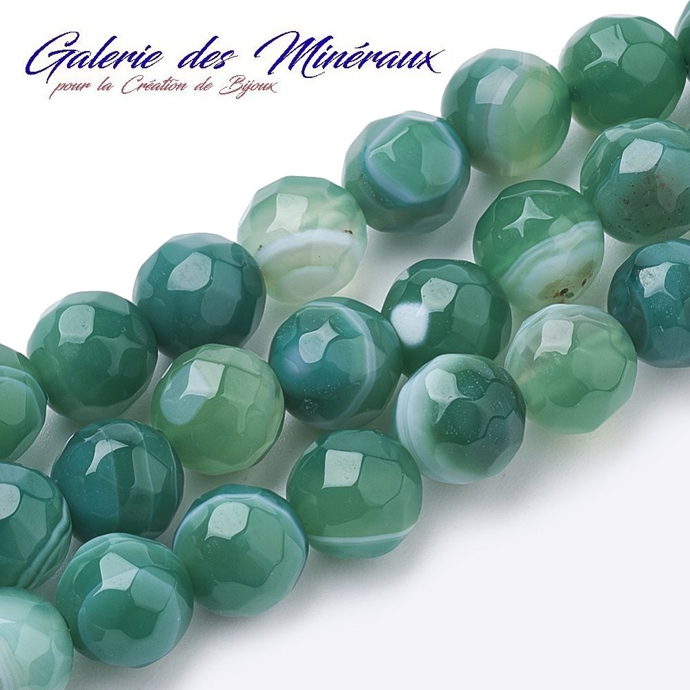 AGATE VERTE gemme pierre naturelle en lot de perles rondes à Facettes et percées
