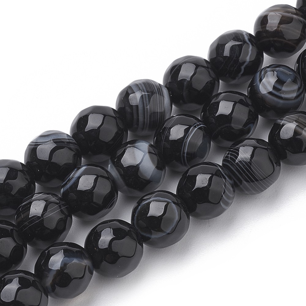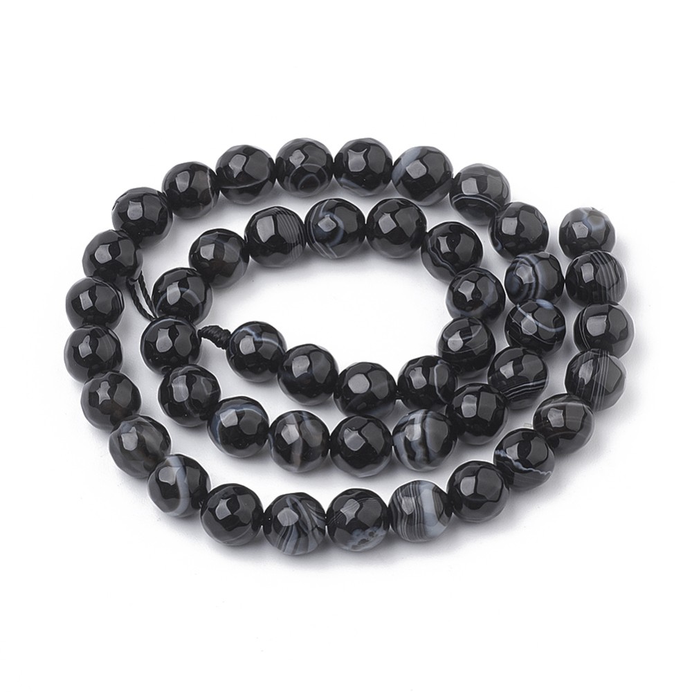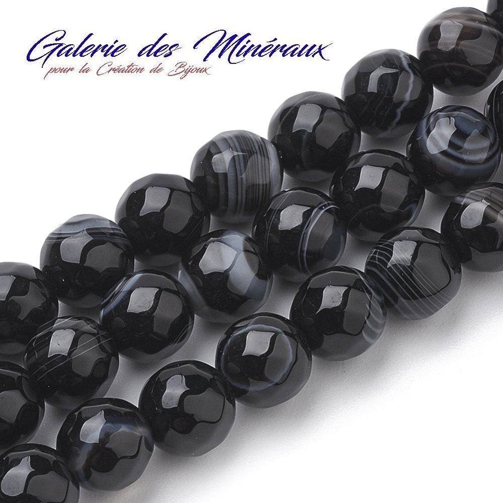 AGATE NOIRE gemme pierre naturelle en lot de perles rondes à Facettes et percées