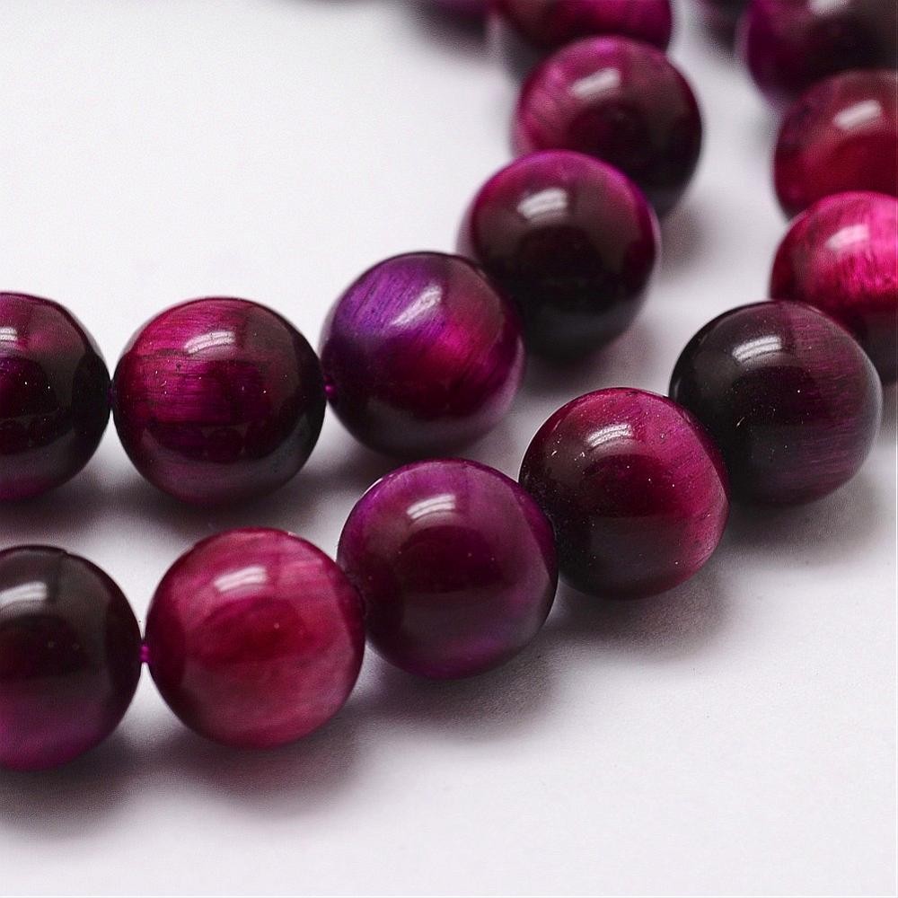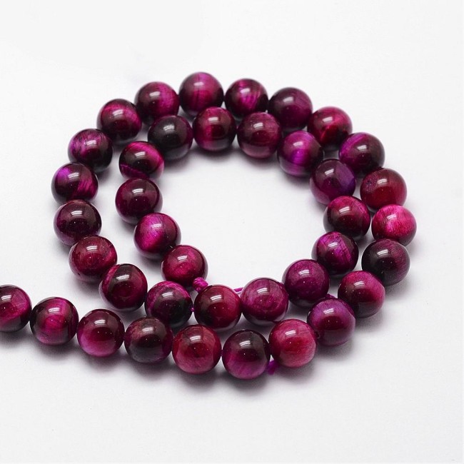 OEIL DE TIGRE Fuchsia gemme pierre naturelle en lot de perles rondes, lisses et percées