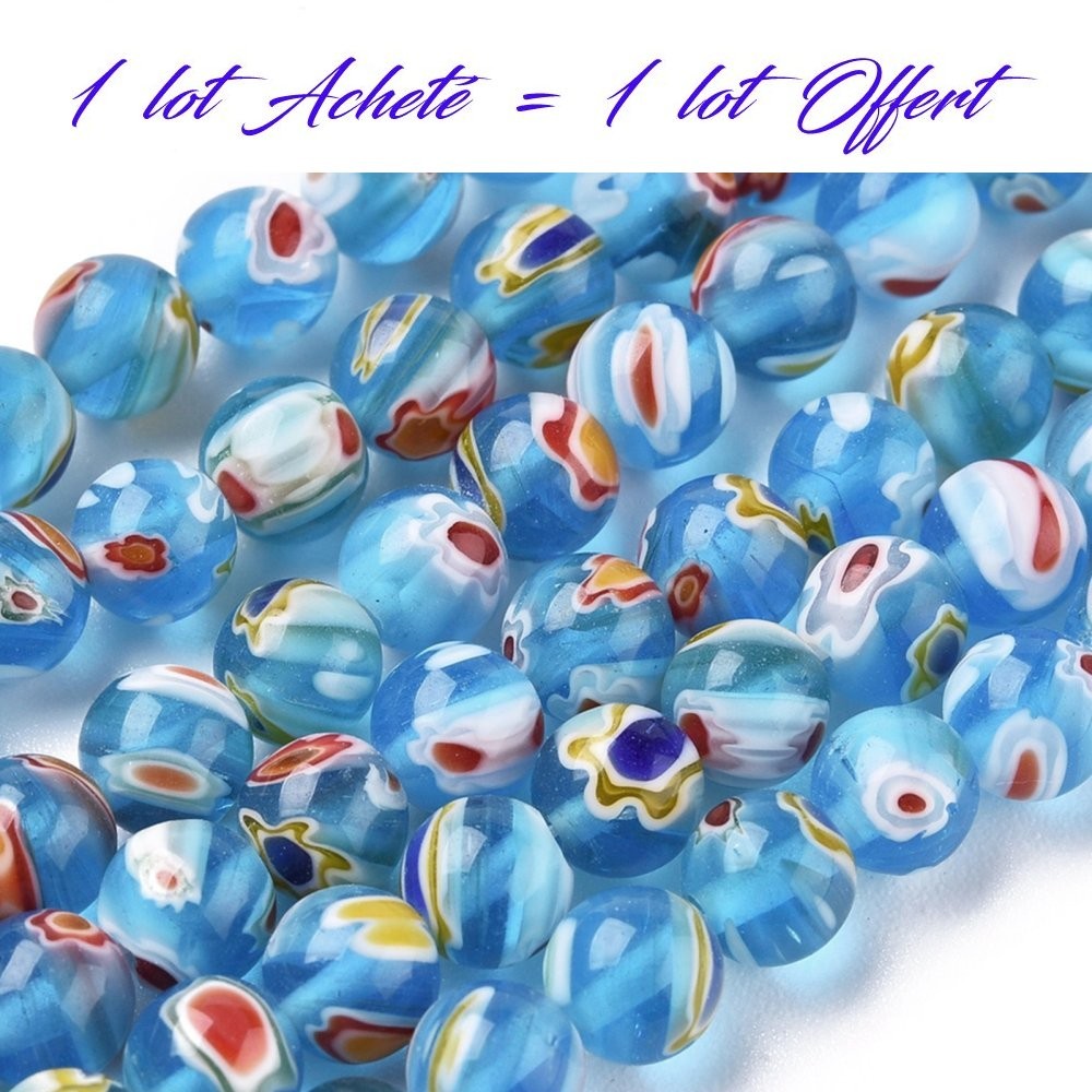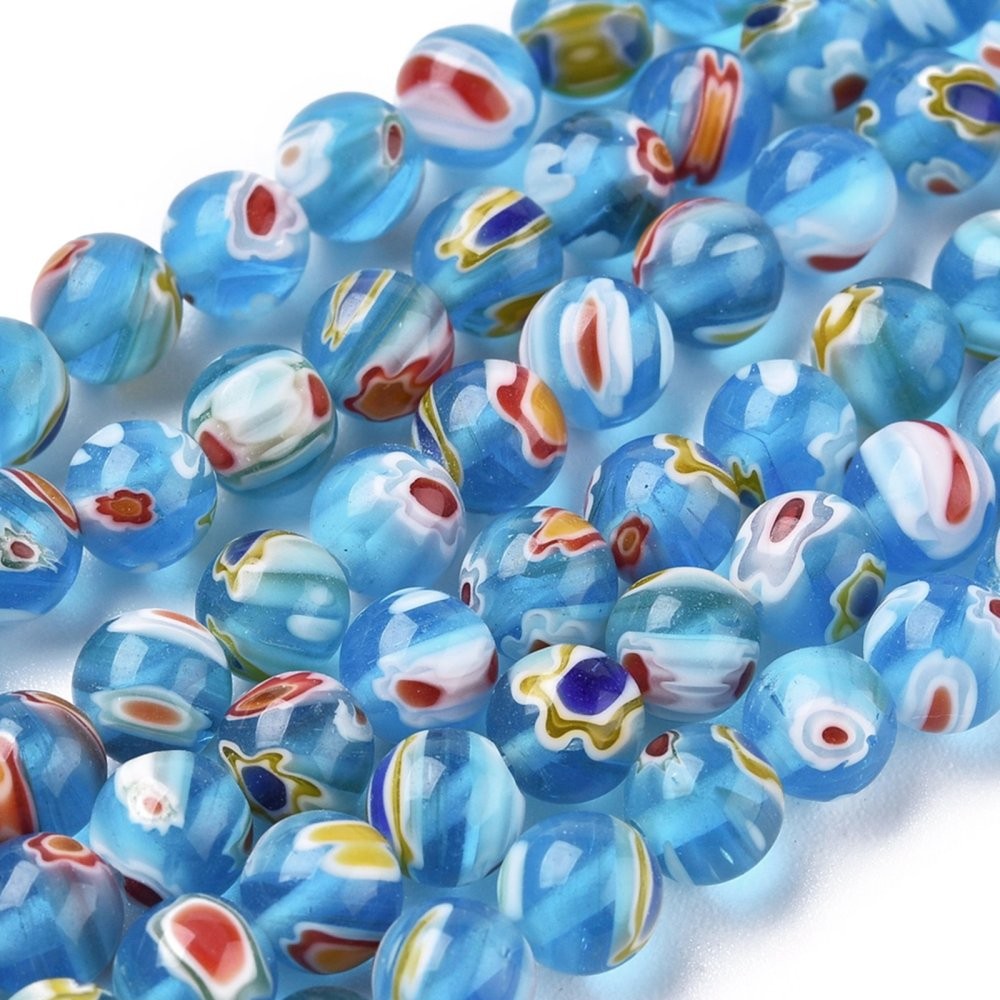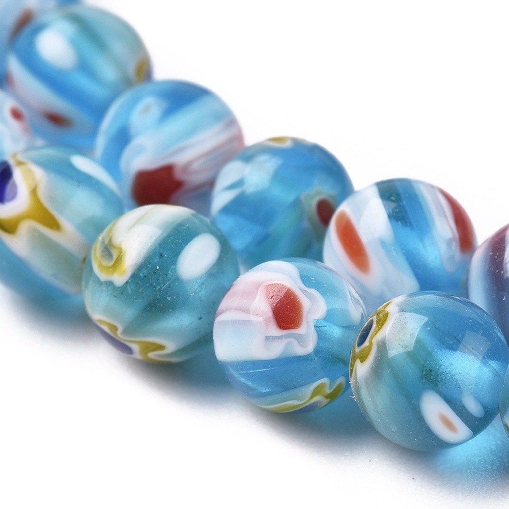 Perles TURQUOISES MURANO MilleFiori perle en verre décoré en lot de perles rondes lisses et percées