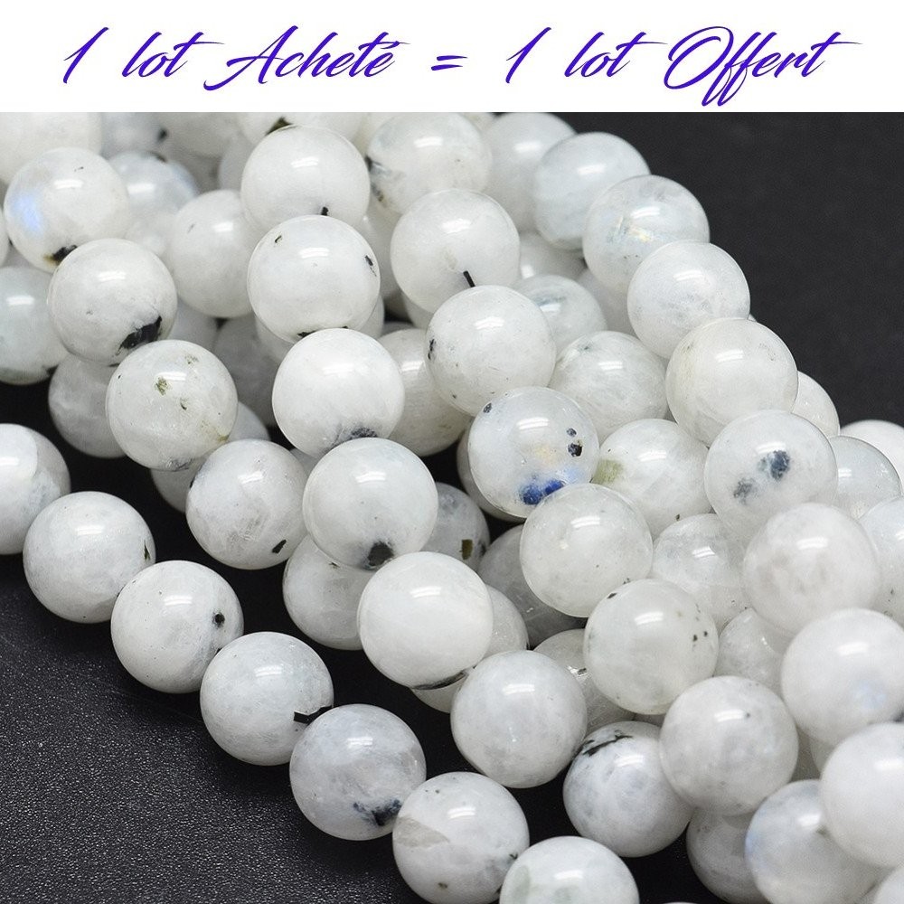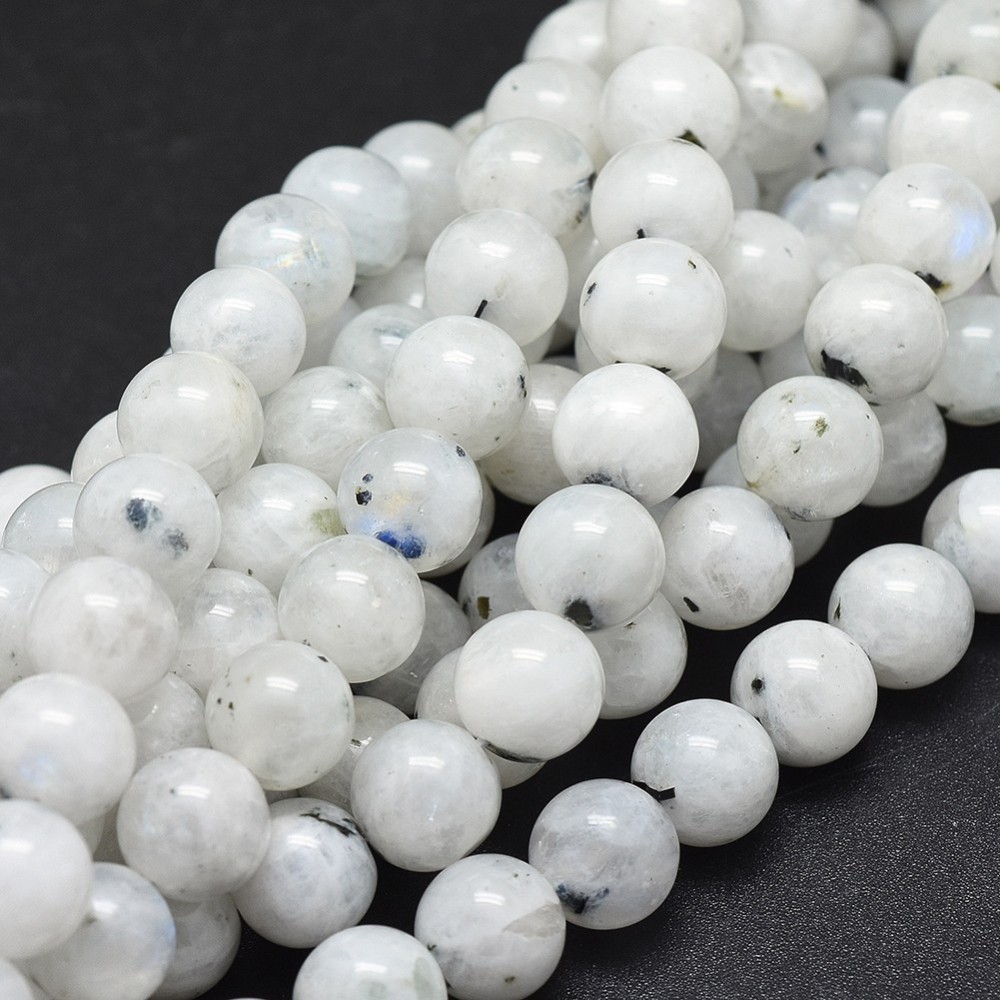 PIERRE DE LUNE Tachetée gemme pierre naturelle en lot de perles rondes, lisses et percées