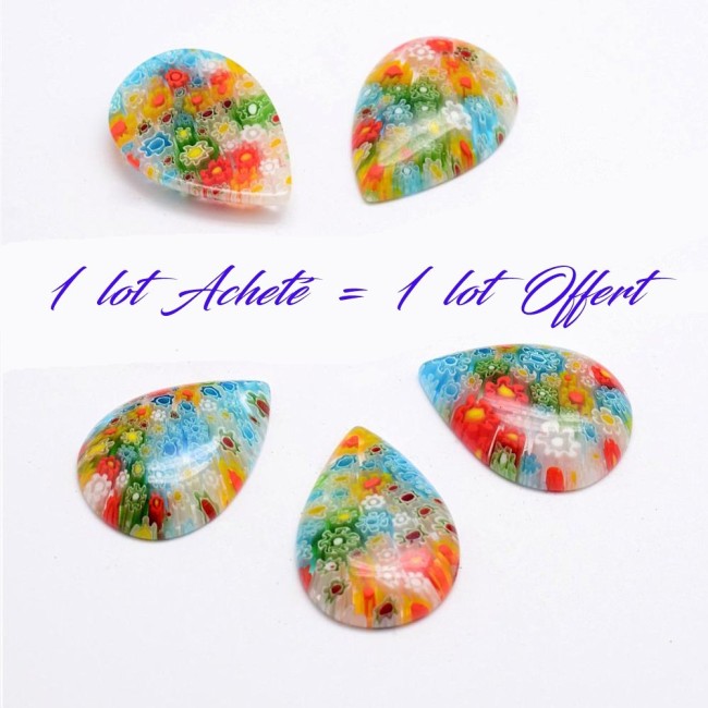 Cabochon MURANO MilleFiori 32x23mm goutte en verre décoré : code Promo VP