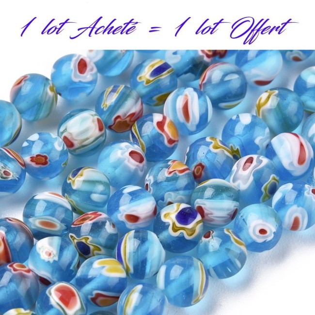 Perles rondes TURQUOISES MURANO MilleFiori 6mm : code Promo VP