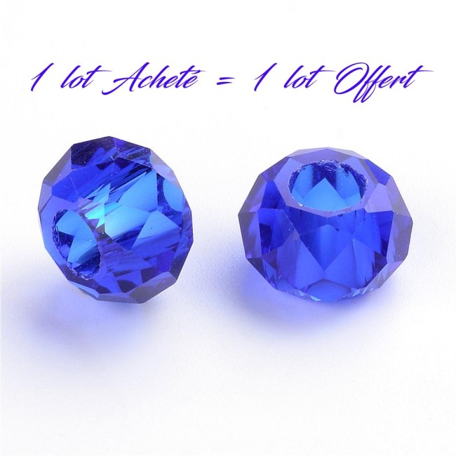 Perles 14mm BLEU ROYAL en verre à Gros Trous à Facettes : code promo VP