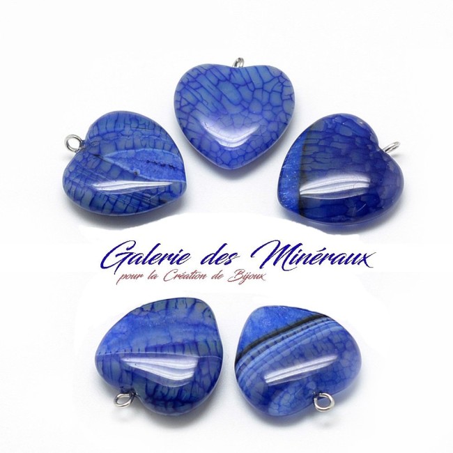 AGATE Brésilienne BLEUE à Veines Apparentes Pendentif Coeur gemme pierre naturelle : création bijoux, loisirs créatifs & DIY